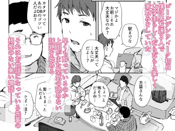 彼氏も彼女も普段から親しくしている先輩なので心配せずに任せていますが、彼氏の方はゴールデンウイーク初日に宅飲みをした友達から「先輩についてよくない噂を聞いている」と忠告されます。