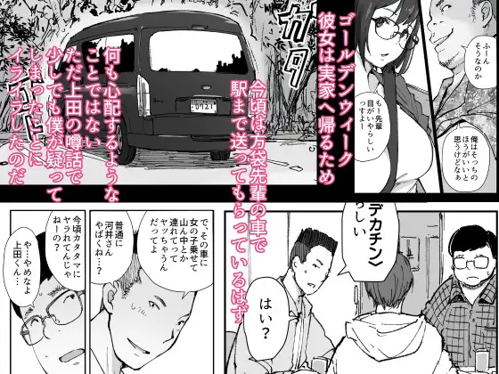 先輩のデカい車が僕の彼女を乗せて激しく揺れるは、彼女も彼氏も信用していた先輩に裏切られて、彼氏が知らないところで彼女が先輩に好き勝手されるのが見どころです!